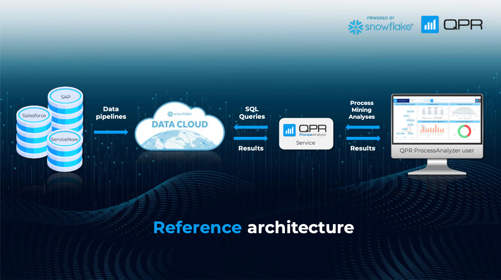 Snowflake Data Cloud is the scalable, high-performance platform that unifies all of your data in one secure environment. QPR ProcessAnalyzer runs natively on Snowflake, reading event logs and transactional data directly from your Data Cloud without replication or complex integrations. This real-time connection allows TOCH to analyse processes at enterprise scale. Together, Snowflake and QPR form a seamless data and process intelligence layer that turns raw operational data into measurable business value.